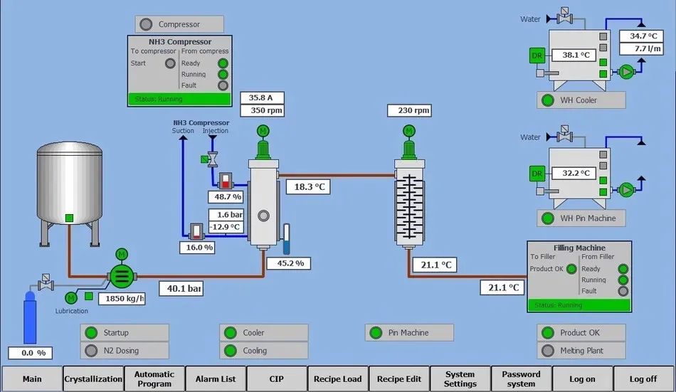 Centralized process monitoring provides operators with real-time insight into system performance and production status.